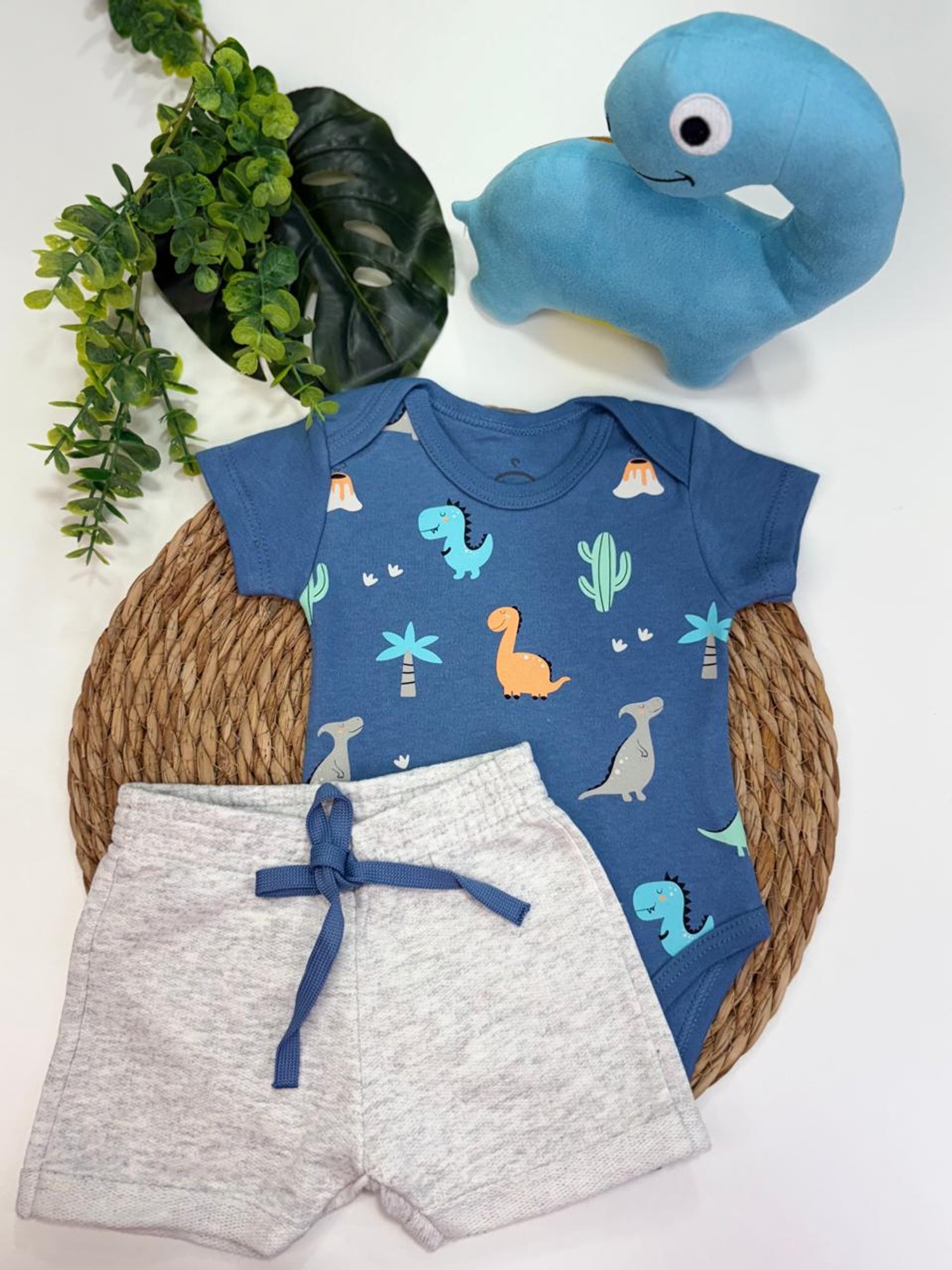 Conjunto Bebê Menino Body E Bermuda Moletinho Dino