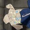 Não lavar com água quente ou usar secadora, pois pode encolher até 5 cm por se tratar de roupas 100% algodão.
