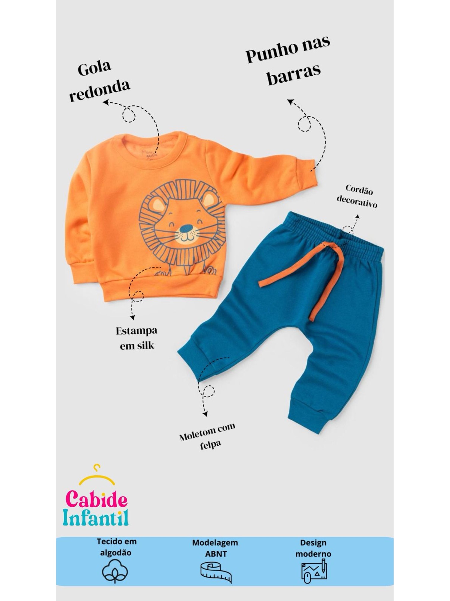 O Conjunto Infantil Menino Moletom Peluciado é um kit de inverno que conta com duas peças estilosas, modernas e de altíssima qualidade. Pensando em lhes proporcionar versatibilidade, o kit foi desenvolvido para ser usado tanto casualmente quanto nas ocasiões mais especiais. São peças com estampas atuais, produzidas no Brasil, que contam com malha fresquinha, de alta durabilidade e que oferecem muito, mas muito conforto para o seu menino. Para que se adapte perfeitamente ao corpo, o moletom possui uma modelagem com design moderno e é confeccionado com moletom peluciado em 100% algodão. O decote é redondo, possui touca e todas as nossas estampas são feitas em silk. As peças também contam punho para melhor ajuste ao corpo da criança. Já a calça, também produzida em 100% algodão, possui punhos nas pernas e elástico no cós. Para a Cabide Infantil, toda criança precisa vestir-se de peças de qualidade, confeccionadas com matérias-primas adequadas à sua proteção e bem-estar. Somos uma loja especializada em roupas infantis e que trabalha com produtos que proporcionam mais do que estilo, sempre preocupados em entregar bem-estar e segurança para os pequenos. Roupa infantil com qualidade e preço baixo você encontra aqui! Compre na Cabide Infantil.