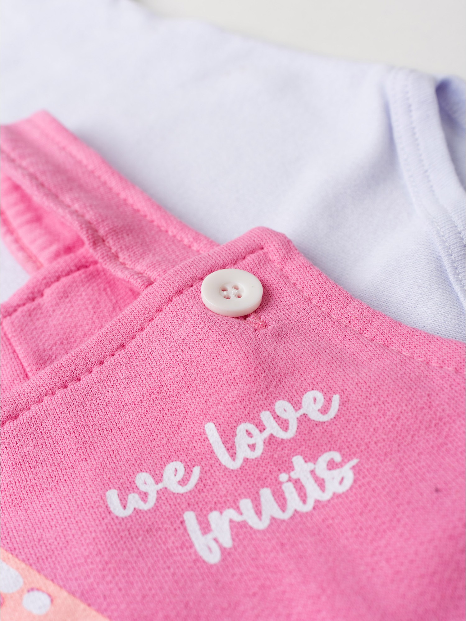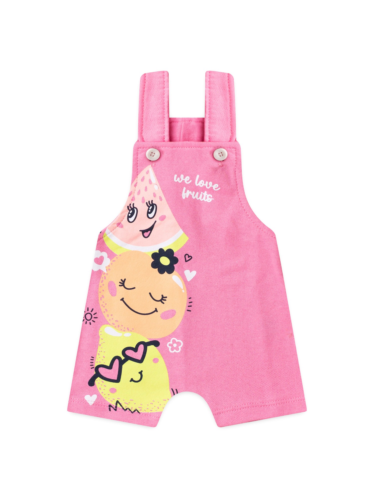 Conjunto Jardineira Bebê Menina Suedine Frutinhas