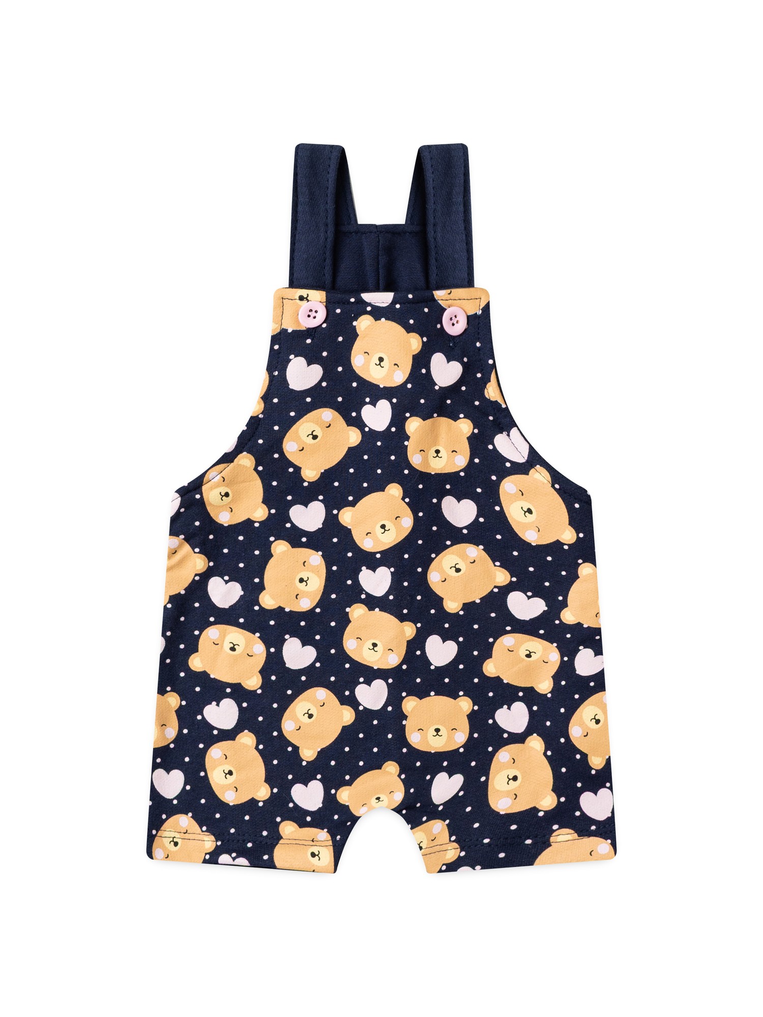 Conjunto Jardineira Bebê Menina Suedine Ursinhos Blush Rosa