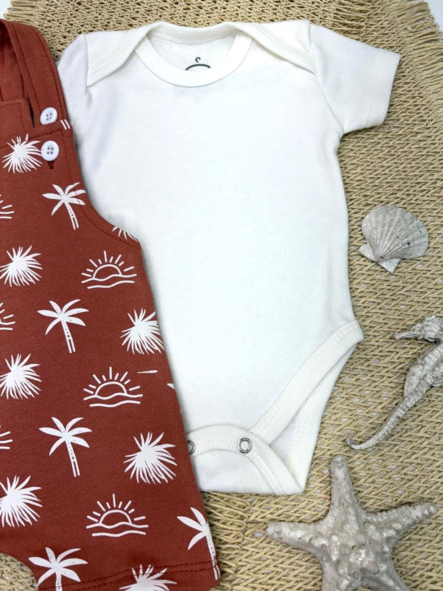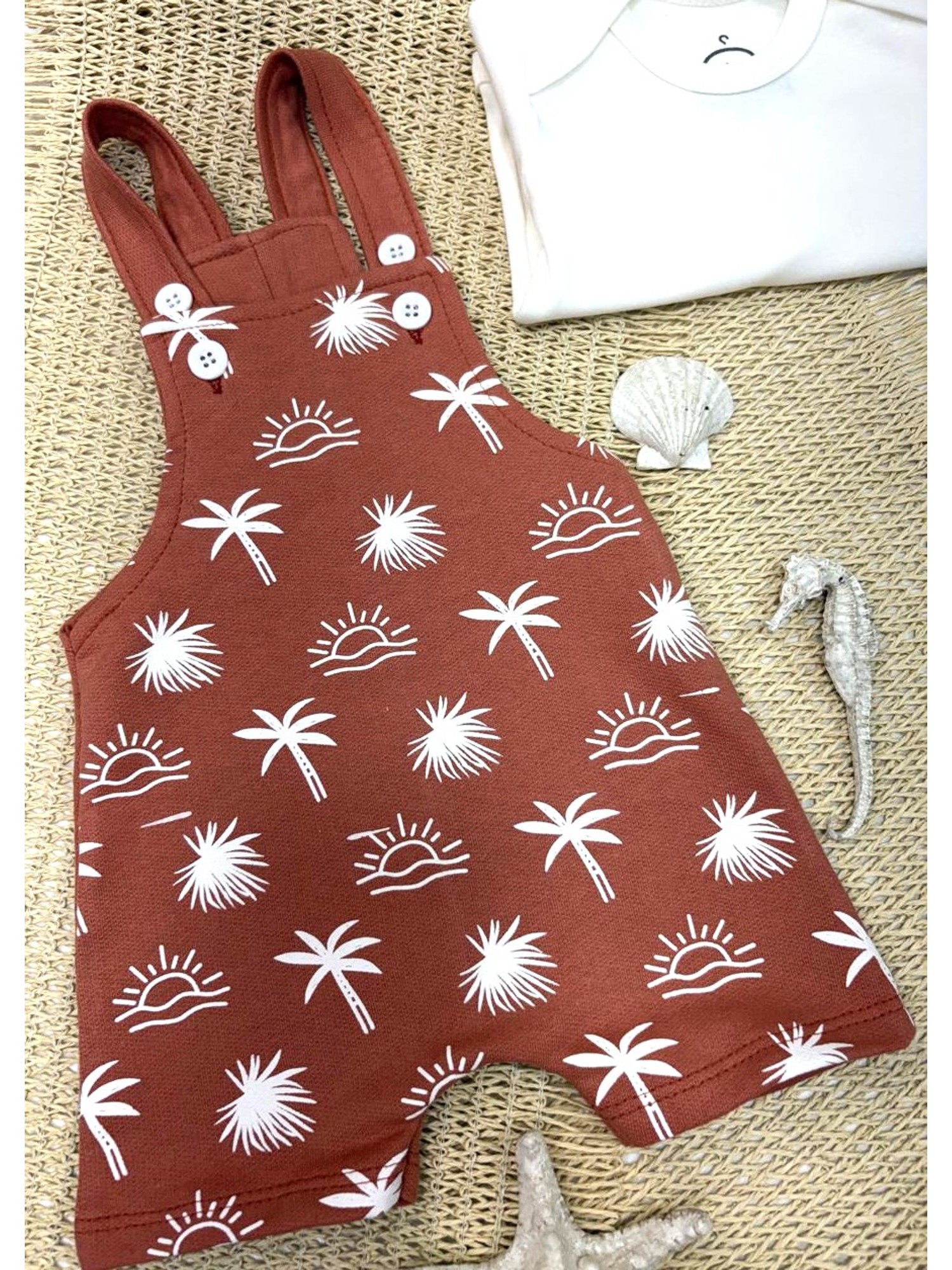 Conjunto Jardineira Bebê Menino Suedine Coqueiros