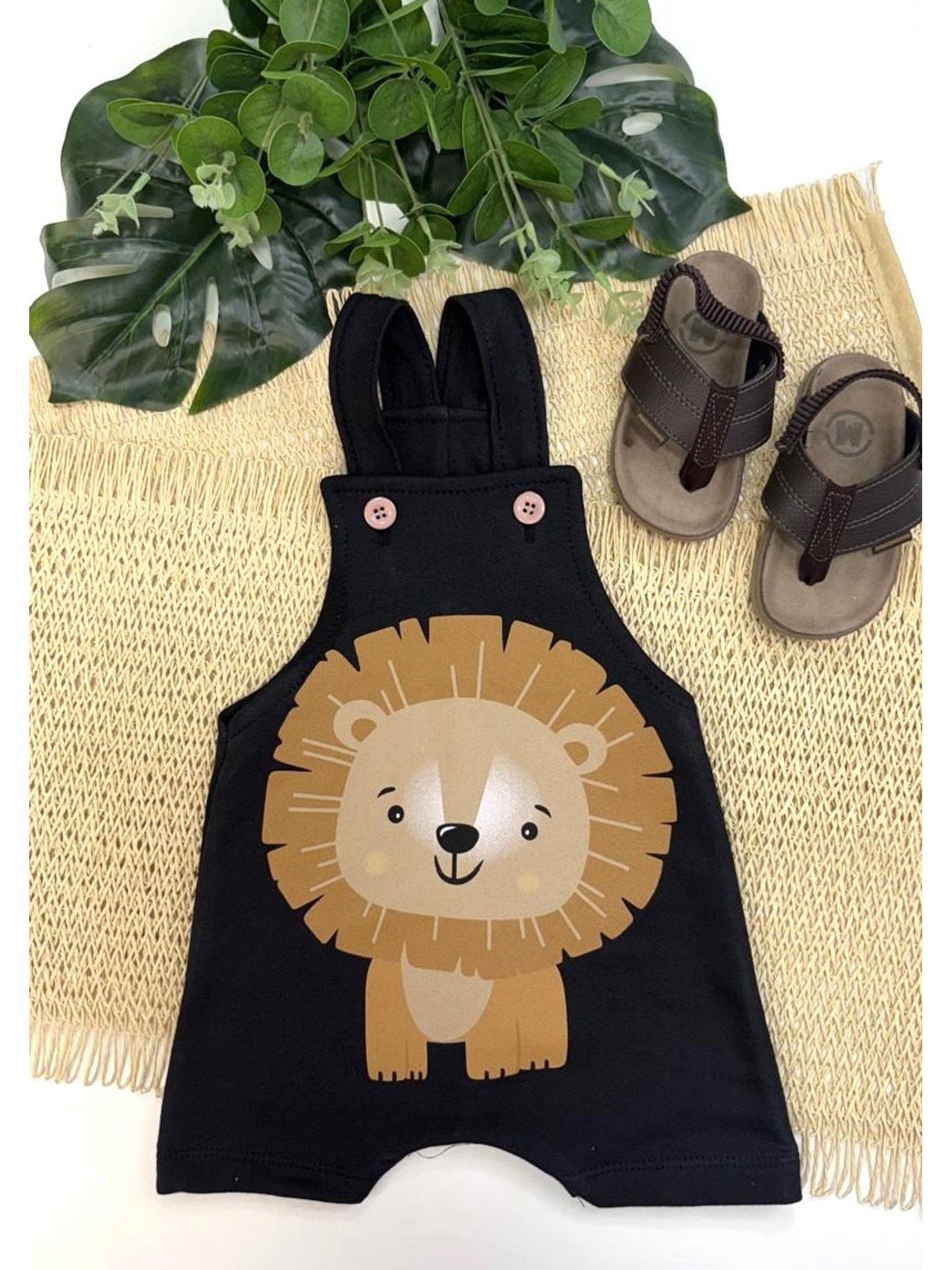 Conjunto Jardineira Bebê Menino Suedine Leãozinho