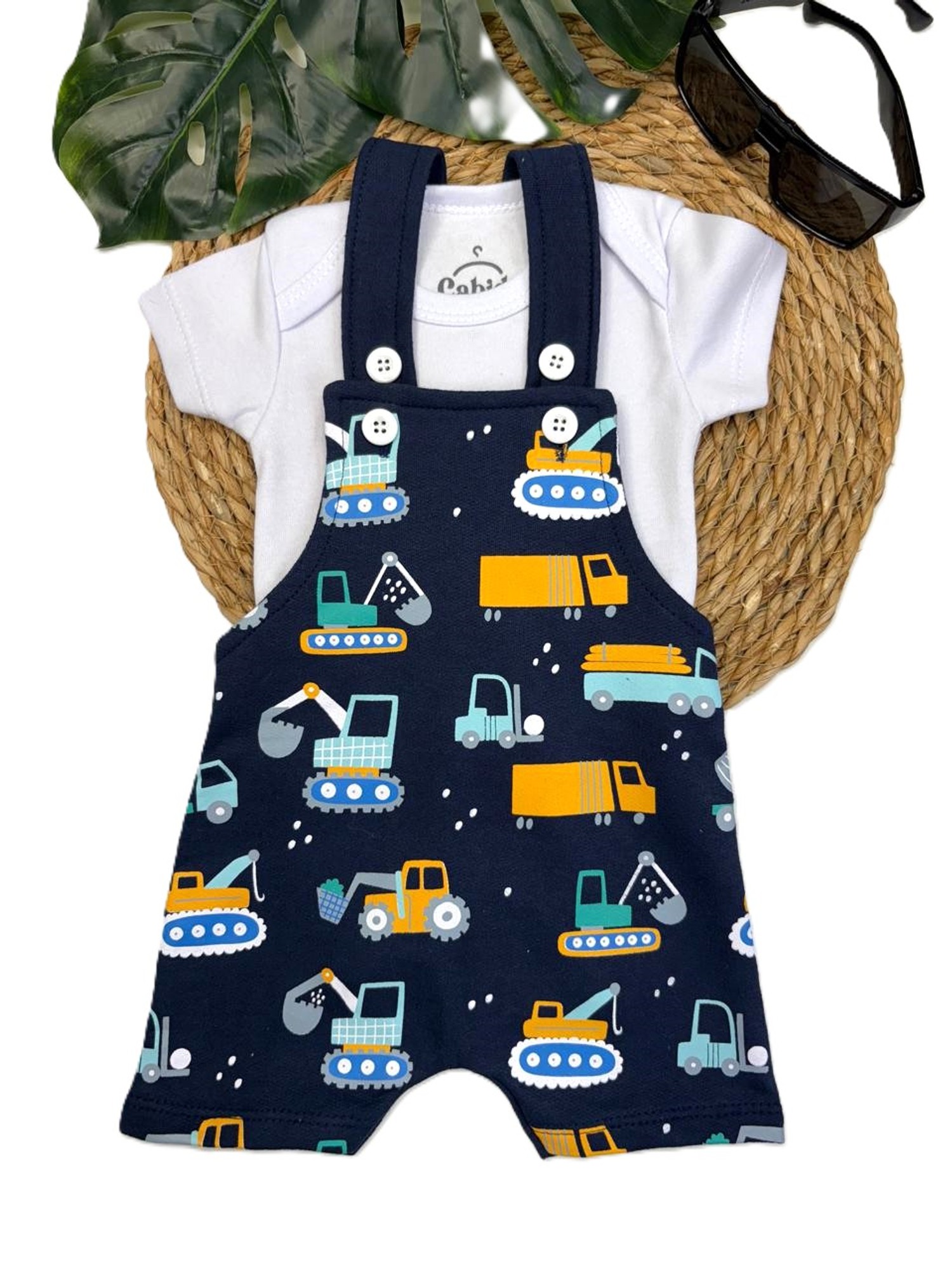 Conjunto Jardineira Bebê Menino Suedine Máquinas Mágicas