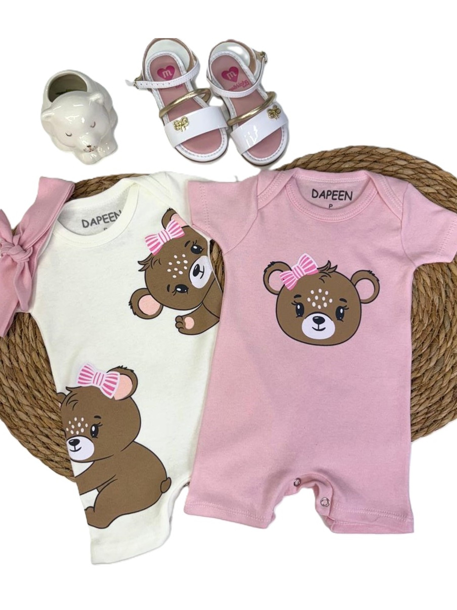 Os conjuntos podem variar de medidas até 2 cm após primeira lavagem.